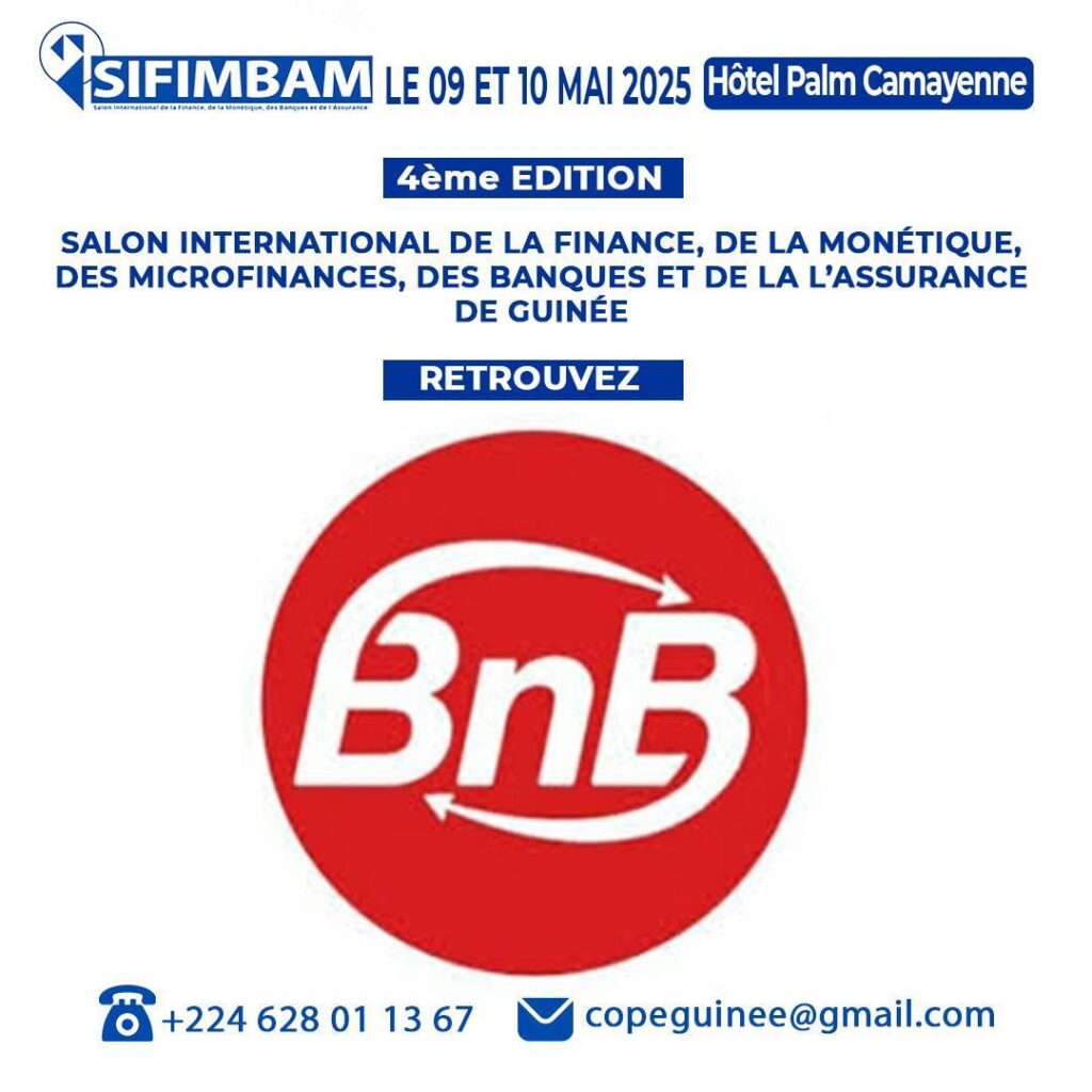 À l’occasion de la 4ème édition du Salon International de la Finance, de la Monétique, des Banques et de l’Assurance de Guinée, la marque BnB sera présente pour vous faire découvrir ses innovations en matière de transfert d’argent et de solutions de paiement.