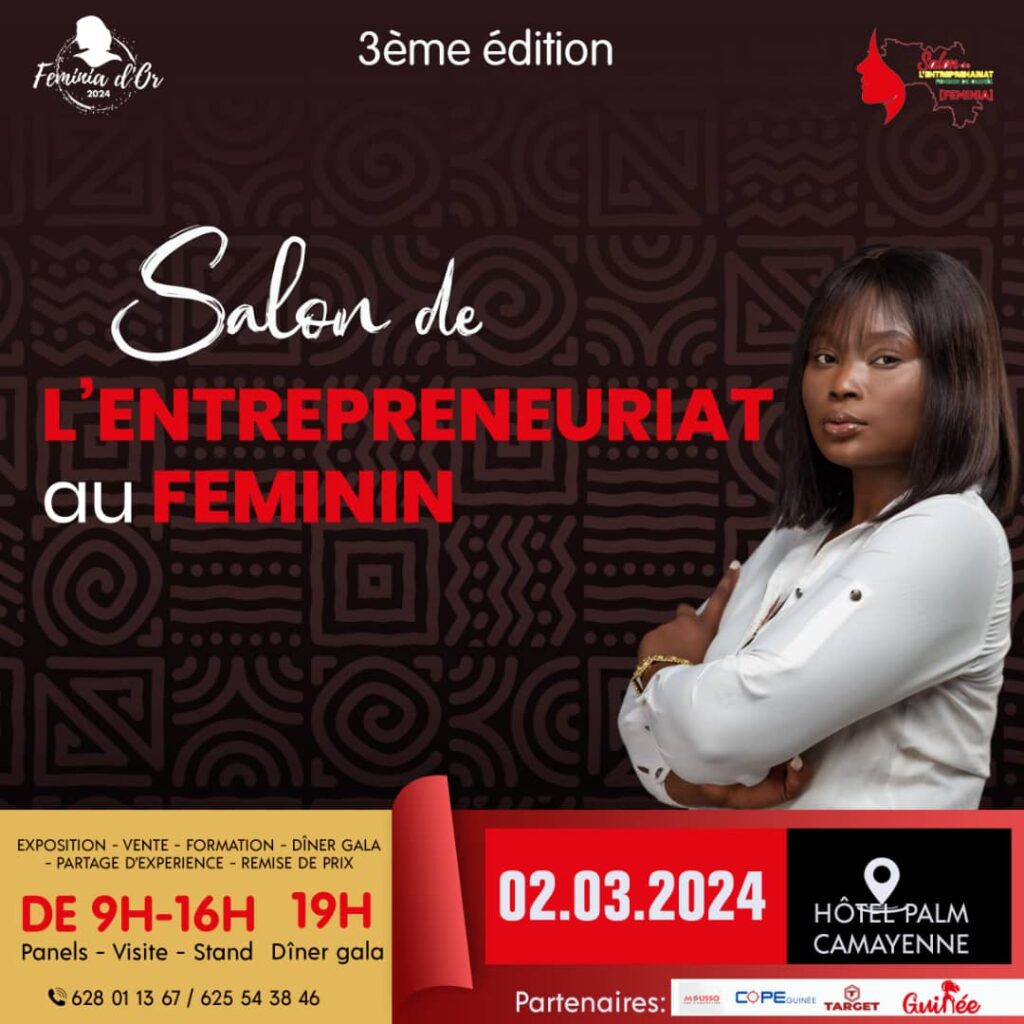 La troisième édition du SALON DE L’ENTREPREUNARIAT FEMININ-(FEMINIA 2024) vous donne rendez-vous le 02 MARS 2024 A L’HOTEL PALM CAMAYENNE DE CONAKRY.